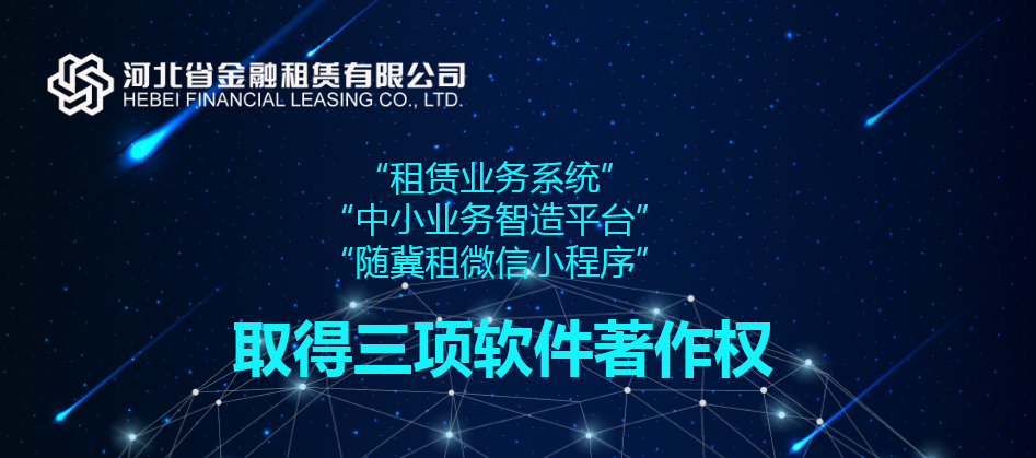 近日,由河北省金融租賃有限公司(以下簡稱“河北金租”)研發(fā)的“中小業(yè)務(wù)智造平臺”、“租賃業(yè)務(wù)系統(tǒng)”、“隨冀租微信小程序”三件軟件成果正式通過國家版權(quán)局審核,獲得計算機軟件著作權(quán),此舉進一步完善了河北金租知識產(chǎn)權(quán)保護體系,也標(biāo)志著公司科技創(chuàng)新工作邁上新臺階。
